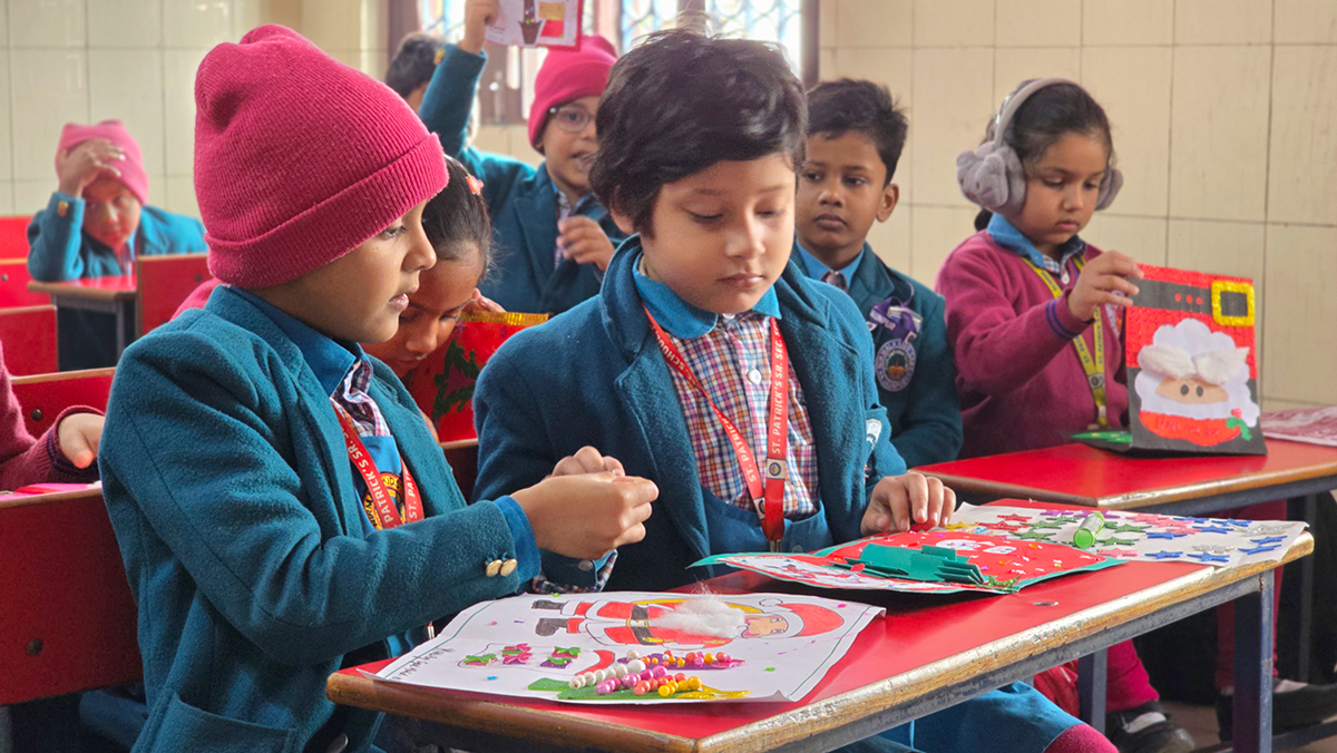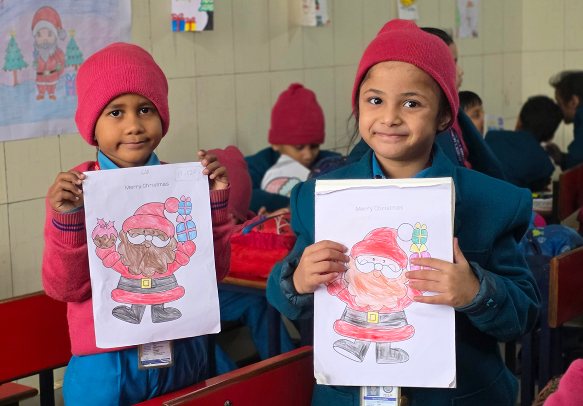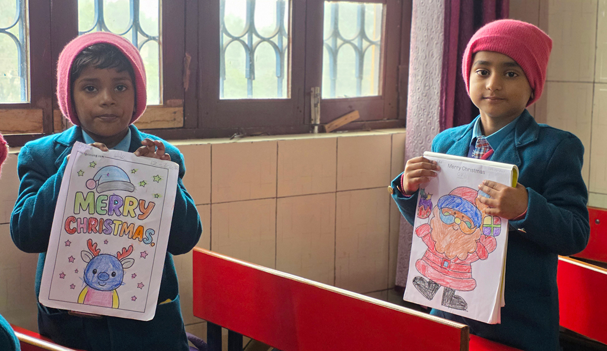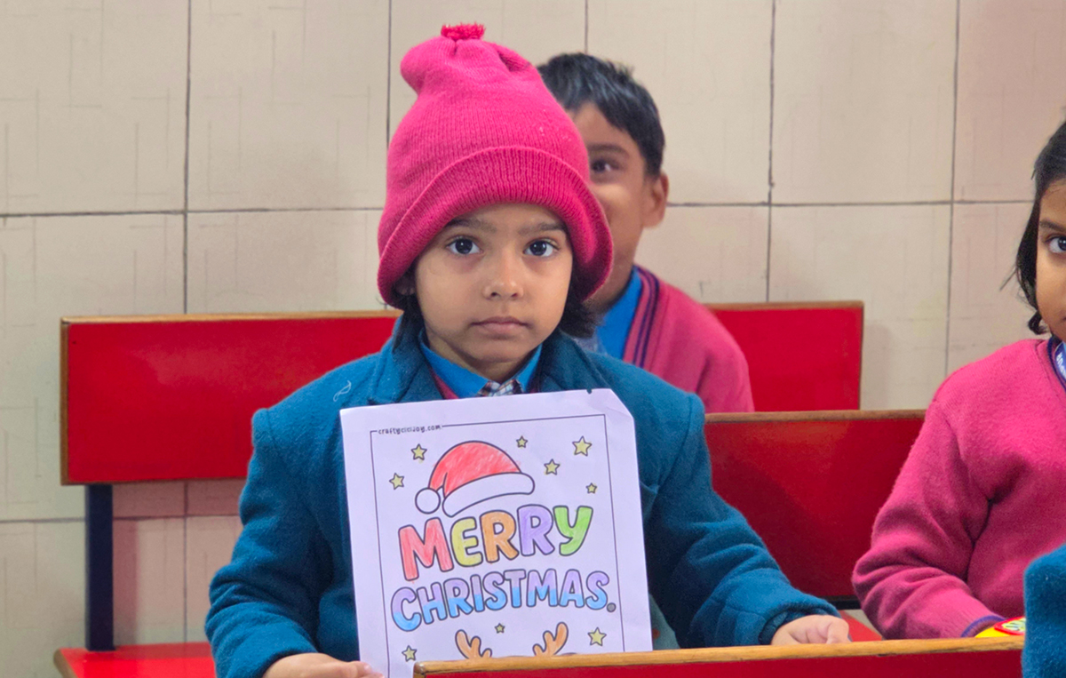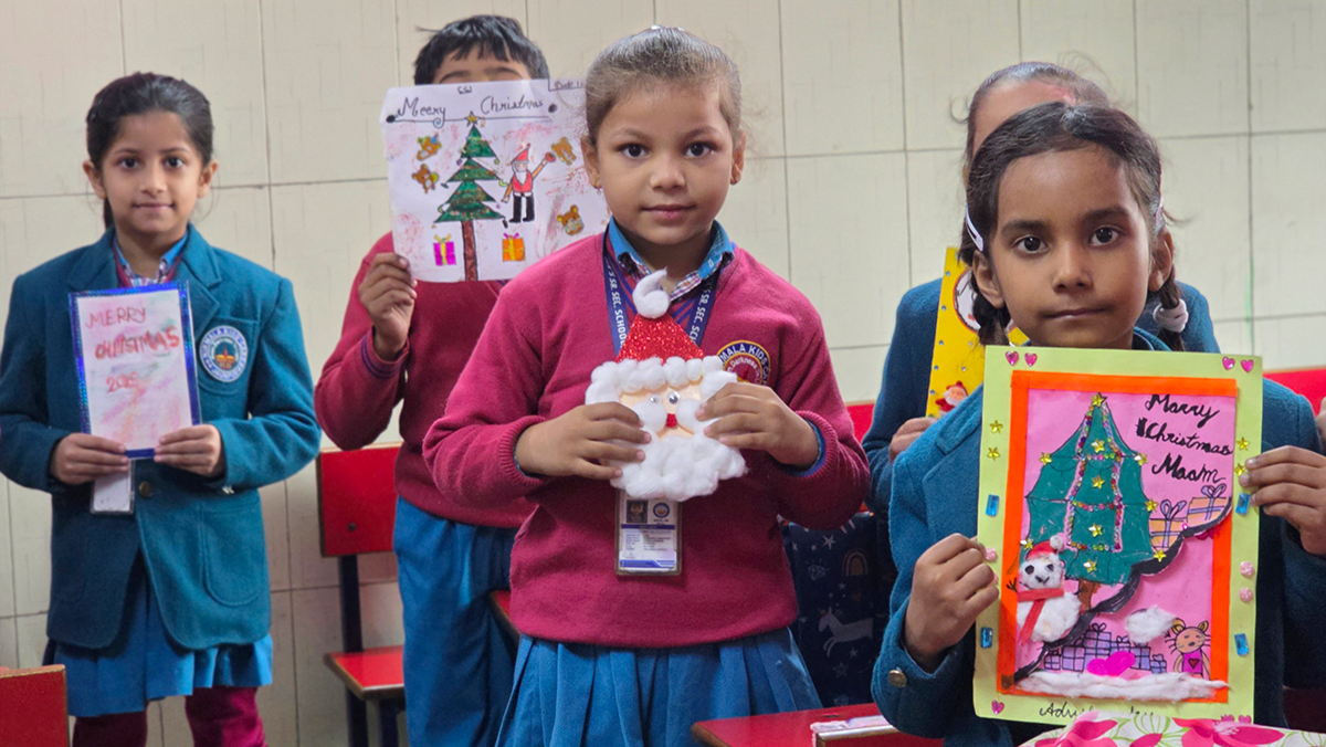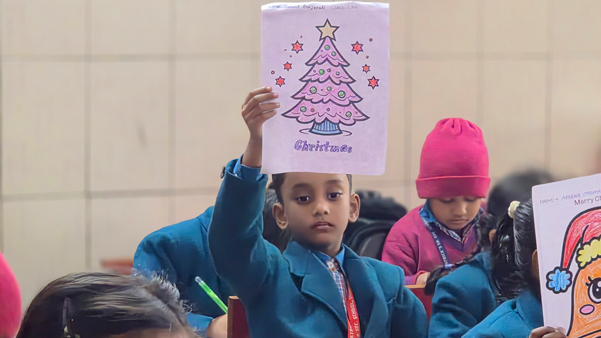 A drawing and coloring activity on the Christmas theme was conducted for KG students, where children happily drew and colored pictures of Christmas trees, Santa Claus, stars, and bells. The activity encouraged creativity, improved fine motor skills, and helped students express their joy of the Christmas season in a fun and engaging way.