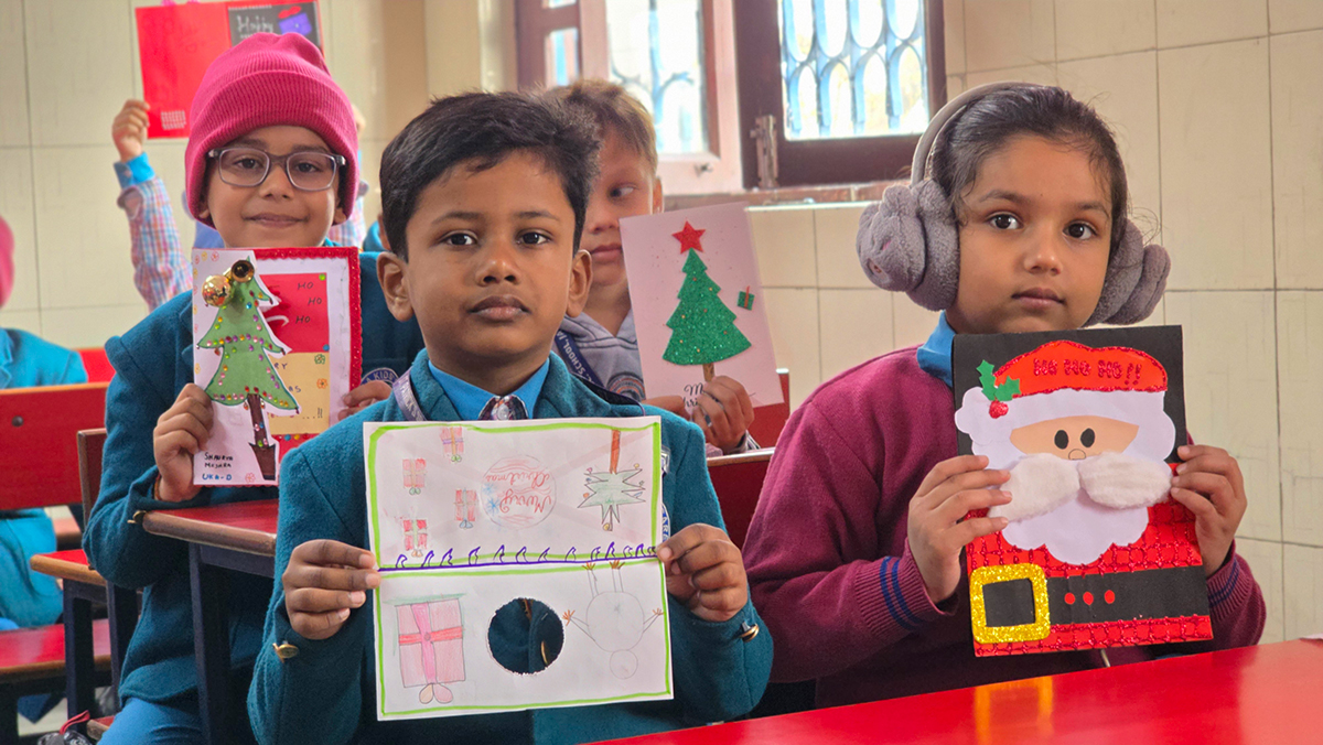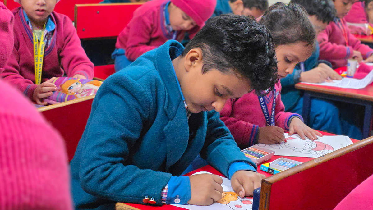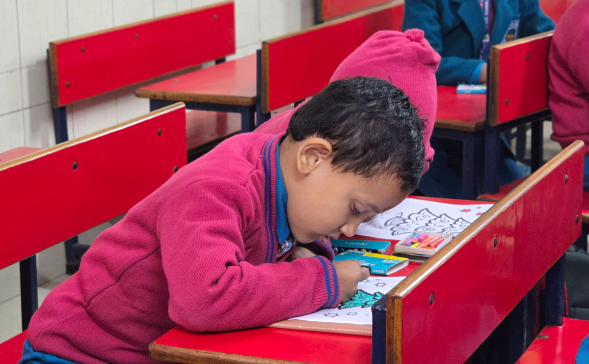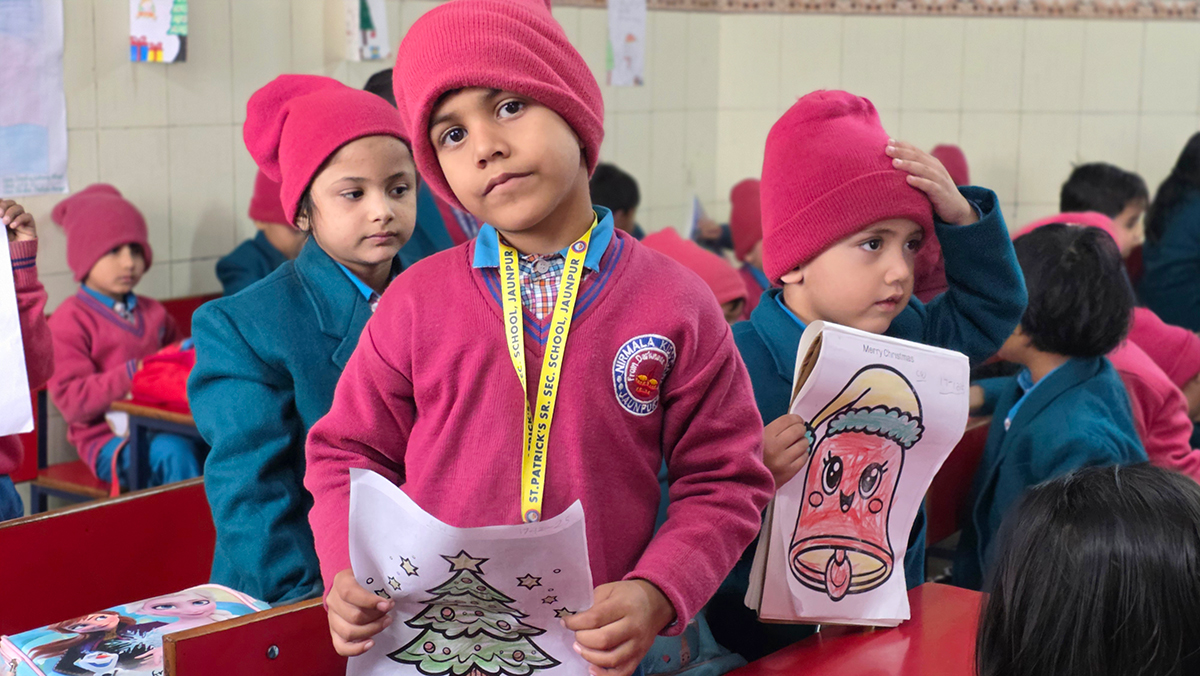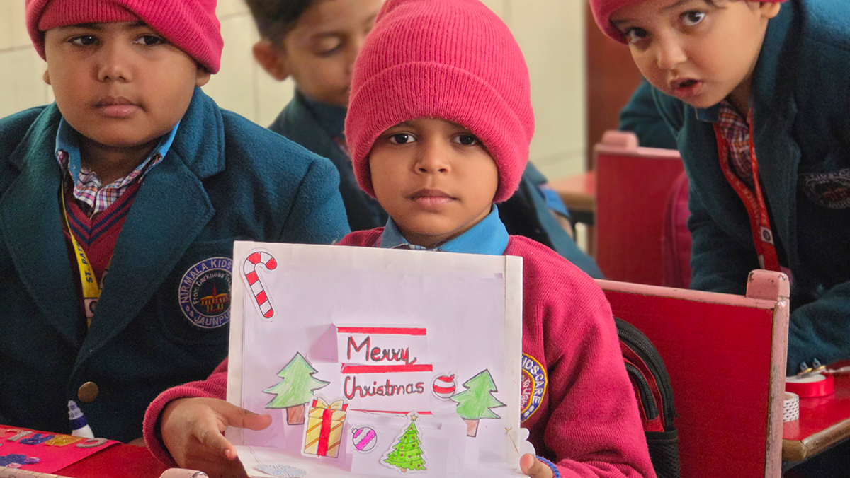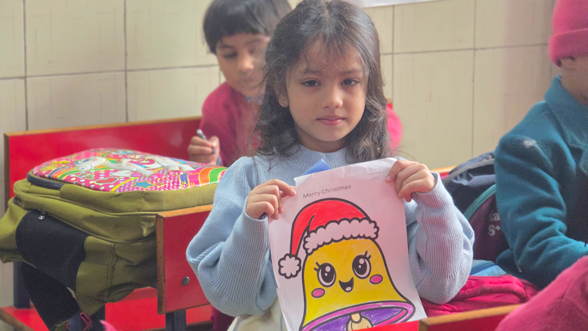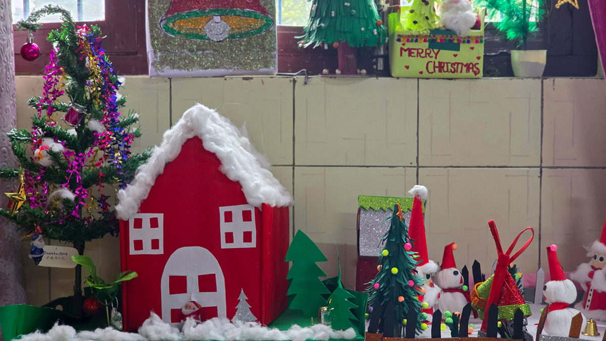 A drawing and coloring activity on the Christmas theme was conducted for KG students, where children happily drew and colored pictures of Christmas trees, Santa Claus, stars, and bells. The activity encouraged creativity, improved fine motor skills, and helped students express their joy of the Christmas season in a fun and engaging way.