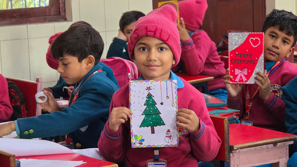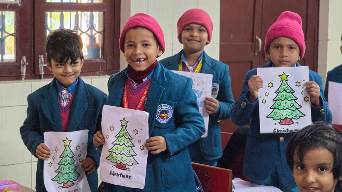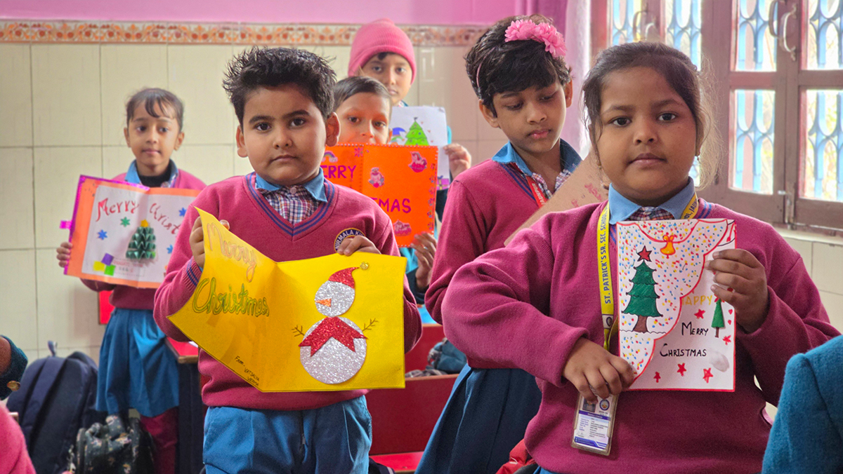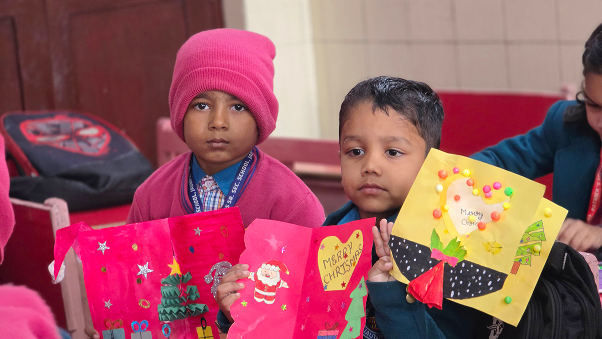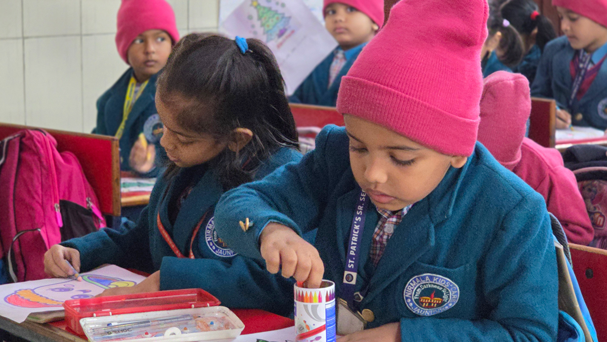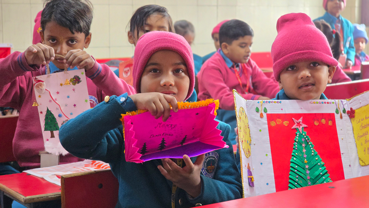 A drawing and coloring activity on the Christmas theme was conducted for KG students, where children happily drew and colored pictures of Christmas trees, Santa Claus, stars, and bells. The activity encouraged creativity, improved fine motor skills, and helped students express their joy of the Christmas season in a fun and engaging way.