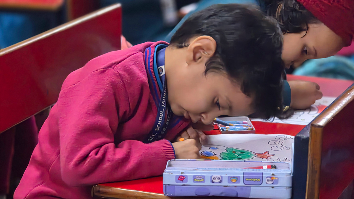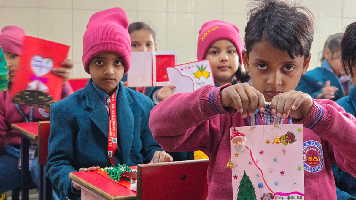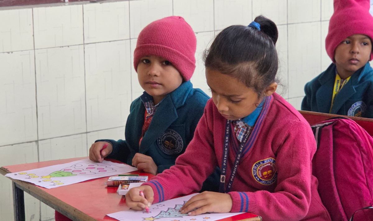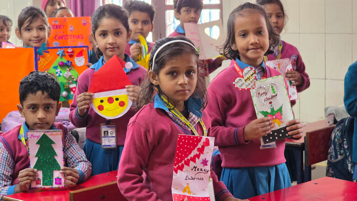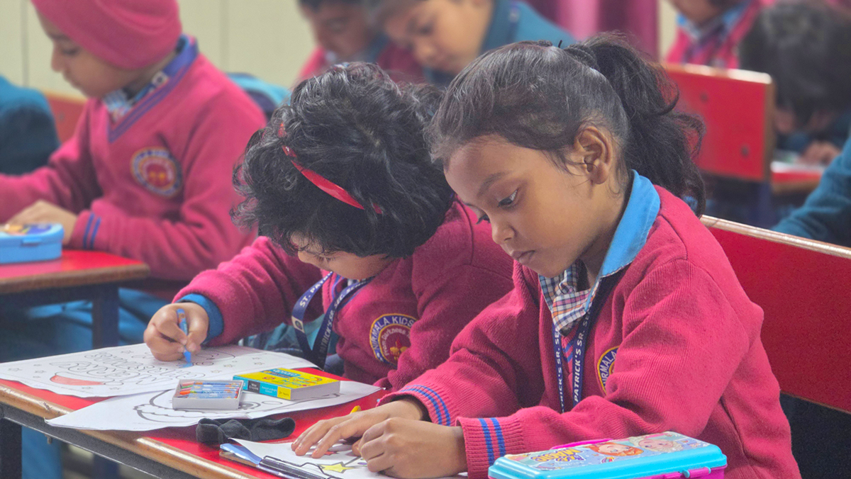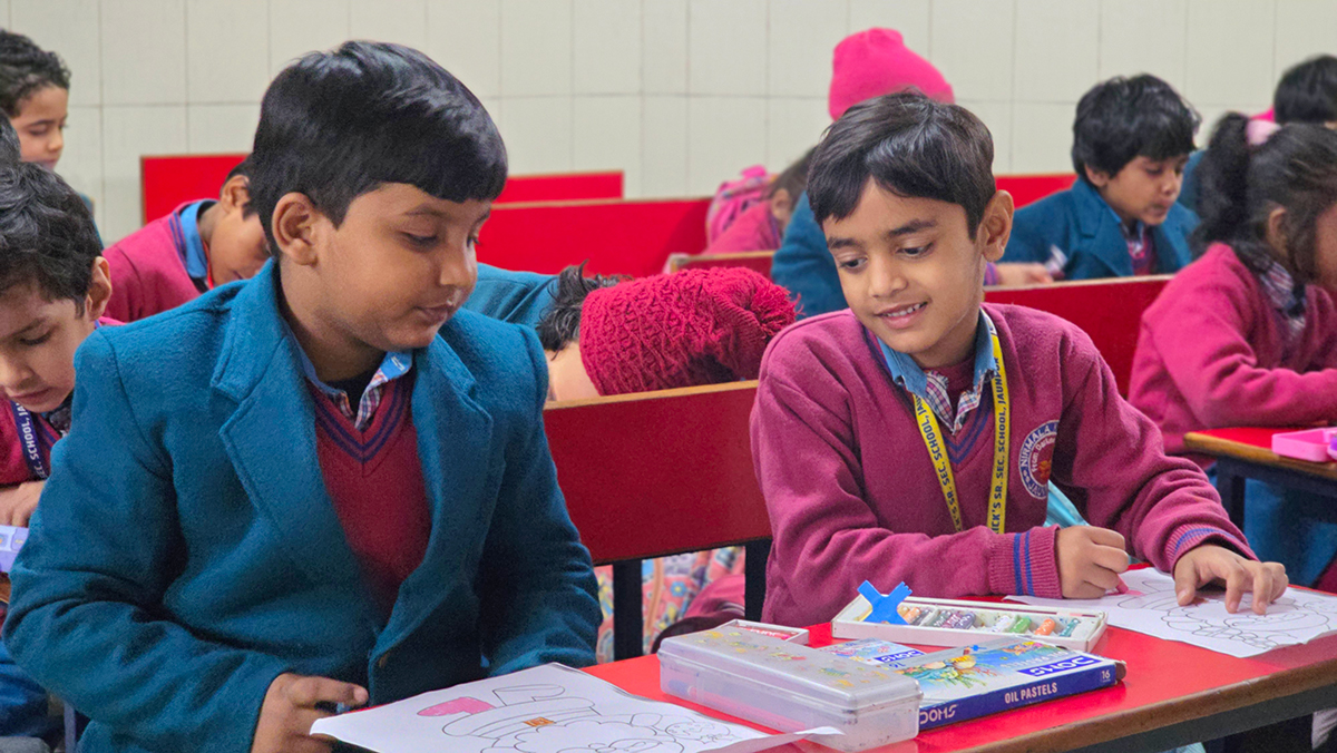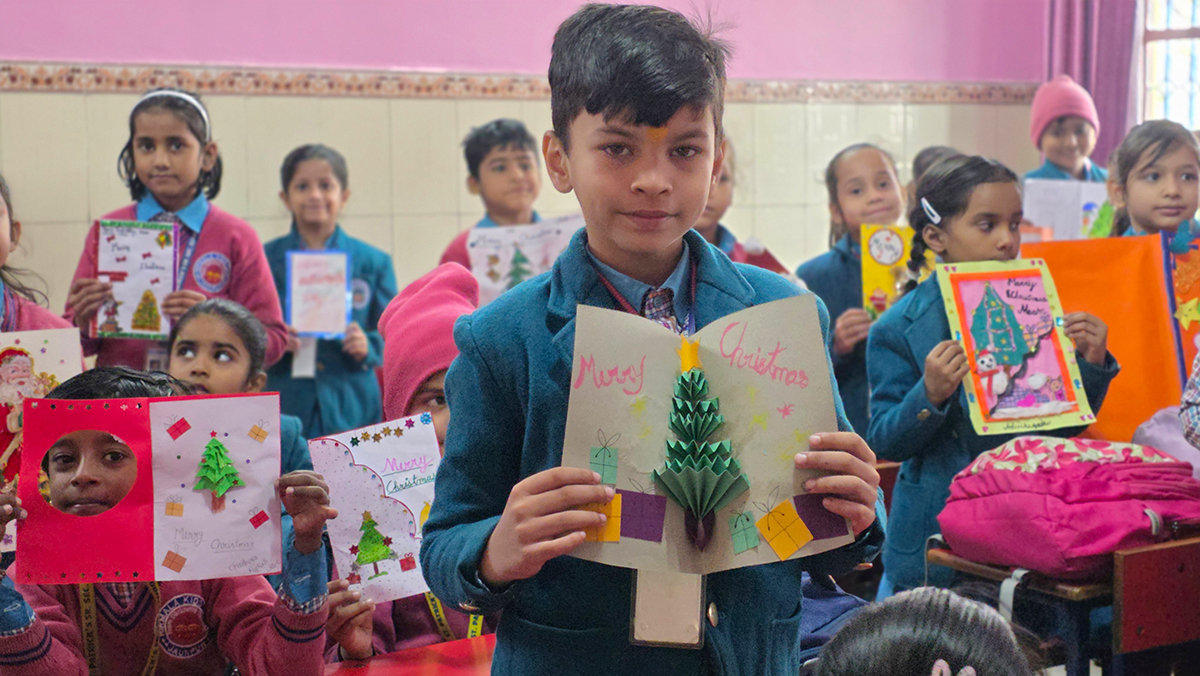 A drawing and coloring activity on the Christmas theme was conducted for KG students, where children happily drew and colored pictures of Christmas trees, Santa Claus, stars, and bells. The activity encouraged creativity, improved fine motor skills, and helped students express their joy of the Christmas season in a fun and engaging way.