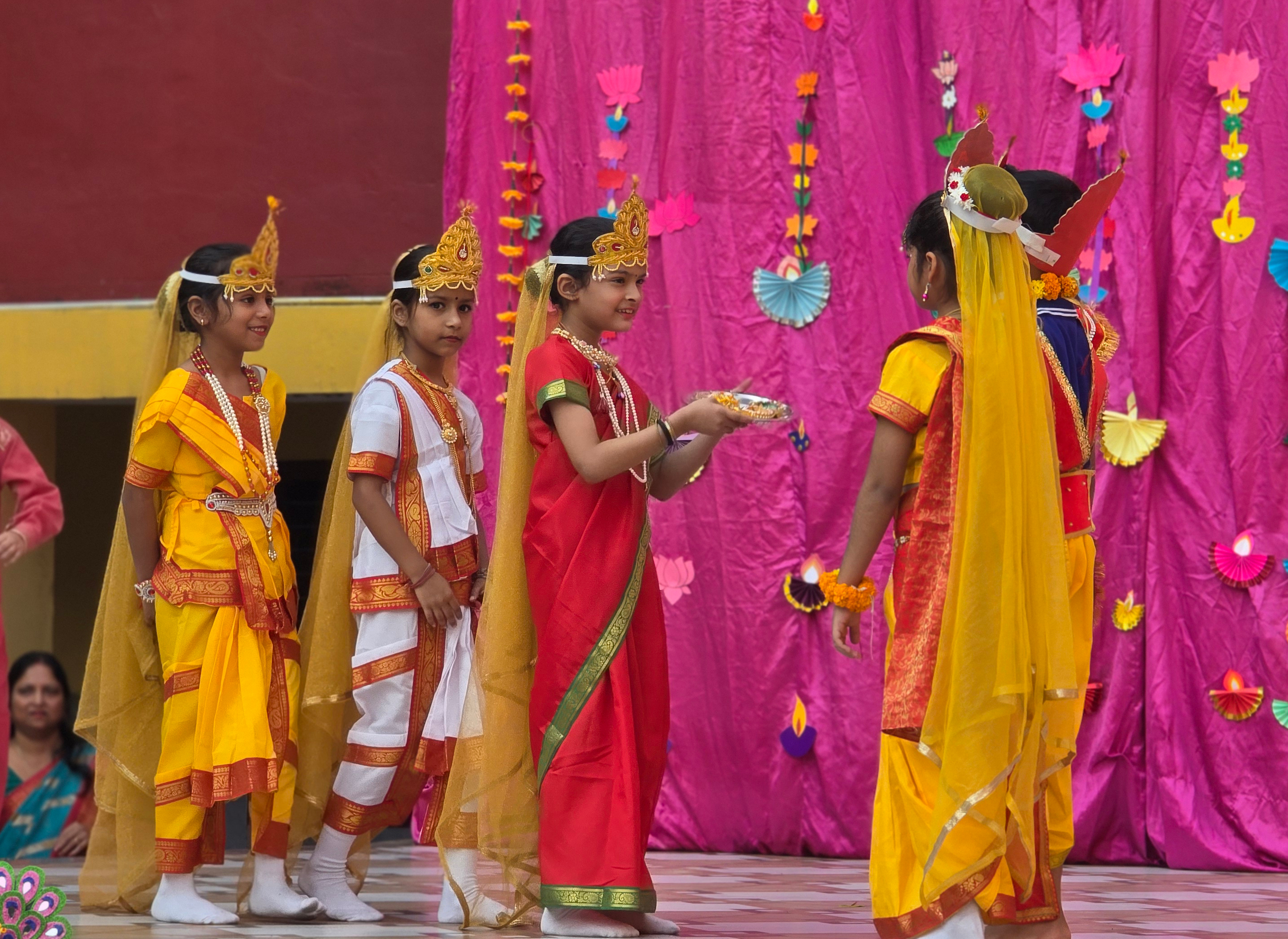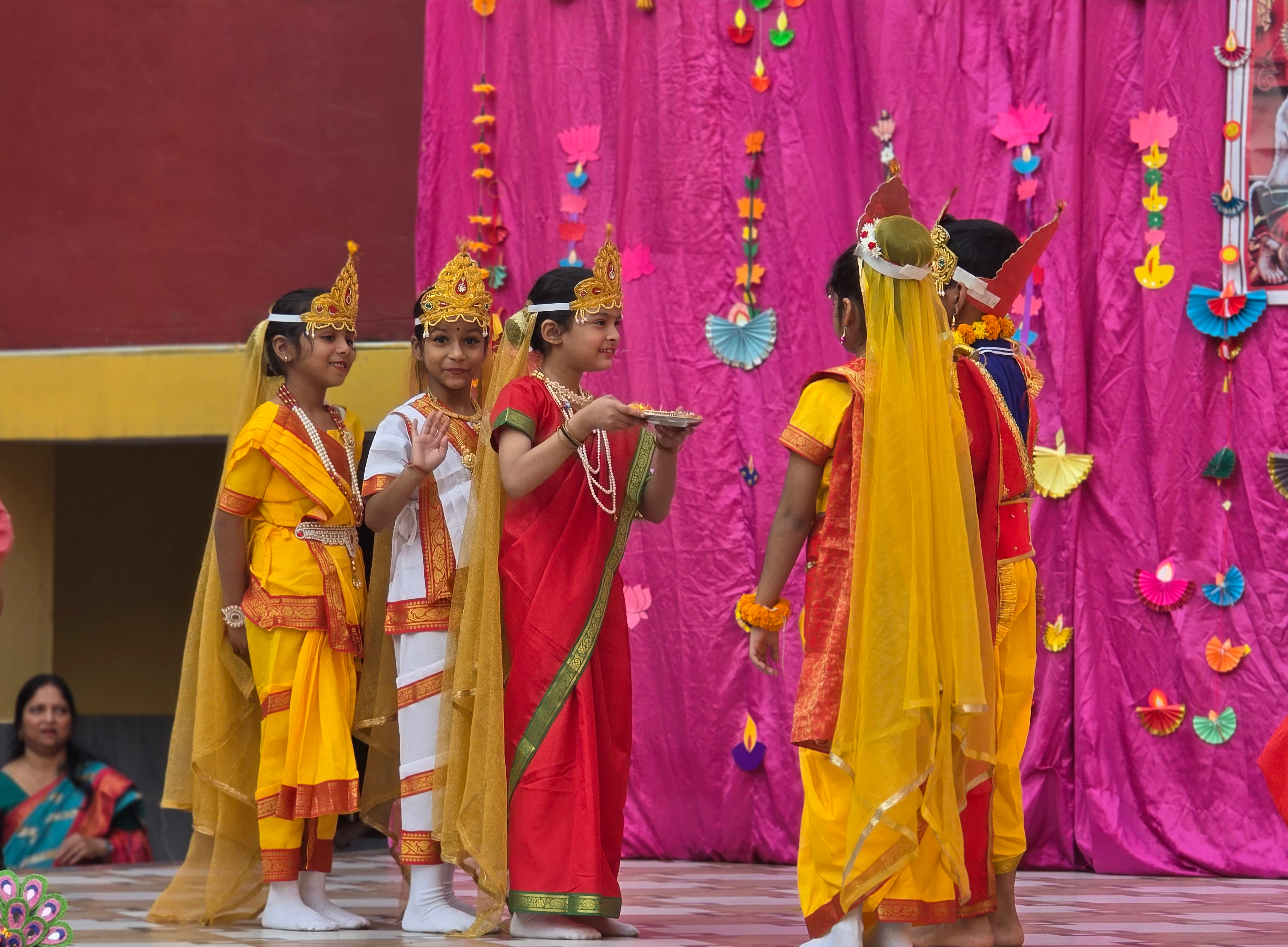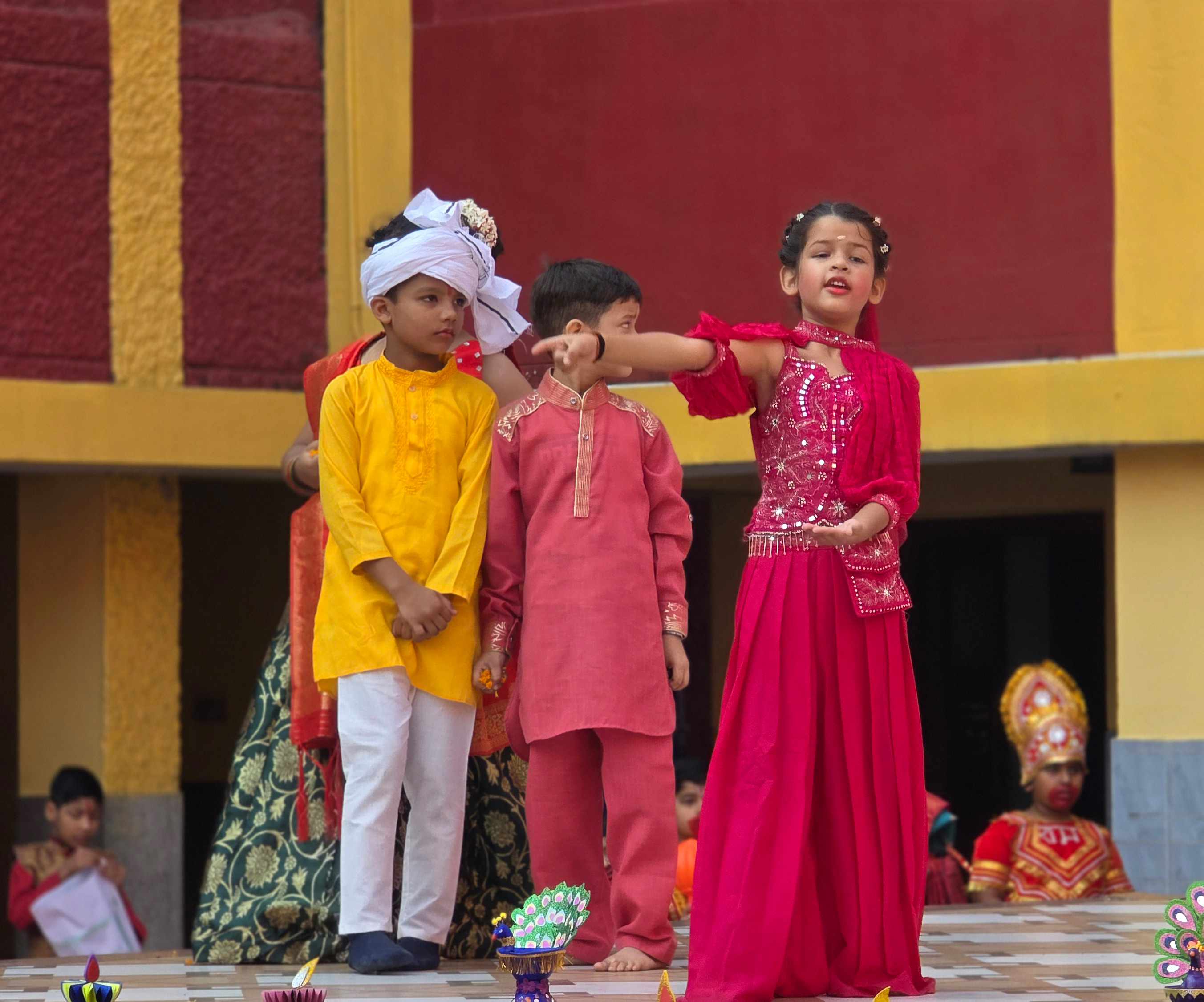 Our school came alive with lights and laughter as we celebrated Diwali. Students performed graceful dances, melodious songs, and thought-provoking skits. The celebration spread the message of joy, togetherness, and victory of light over darkness.